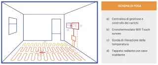 Per ottenere la massima efficienza e limitare il costo d’esercizio, i tappeti radianti andranno collegati ad un sistema di gestione della temperatura composto da centralina e relè statico che controllerà il livello d'assorbimento utenza per garantire di rimanere entro i limiti di potenza erogabile ed utilizzare a pieno quanto disponibile.