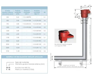 I riscaldatori tubolari angolari comprendono la guaina tubolare esterna orizzontale riscaldata con cartuccia riscaldante longline, la guaina tubolare esterna verticale non riscaldata e la protezione coprimorsetti.