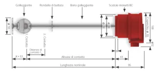 Lunghezza nominale=1,5cm (spessore supporto)+Altezzadi contatto (in cm) + Dimensione X (in cm)