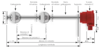 Il magnete incorporato nel corpo galleggiante mobile eccita il contattoreed fisso presente nella barra del galleggiante. Per garantire una ottimaleresistenza chimica e termica, l'interruttore a galleggiante è realizzato neimateriali polipropilene (PP) o fluoruro di polivinile (PVDF).Il galleggiante è disponibile con cavo di 1,6 m di lunghezza (esecuzione PG),con la scatola morsetti piccola LC (materiale PP) o LC/L (PVDF) e la scatolamorsetti grande BC(PP) o BC/L(PVDF). Il montaggio del cavo è facile in tuttiesecuzioni con scatola.La regolazione continua in altezza della barra galleggiante ed il semplicefissaggio dell’interruttore a galleggiante sulla parete del recipiente è consentitanelle esecuzioni PG e LC dal supporto (SH10) fissato alla barra galleggiante.Nell' esecuzione BC il fissaggio può venire realizzato tramite il supporto HB(PP)o HB/L(PVDF) al bordo del recipiente o in traverse utilizzando il manicotto dimontaggio EM o il manicotto di fissaggio HM.