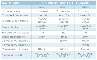 MTS - Nr. contatti - Lungh. nomin. - Tipo di uscita - B